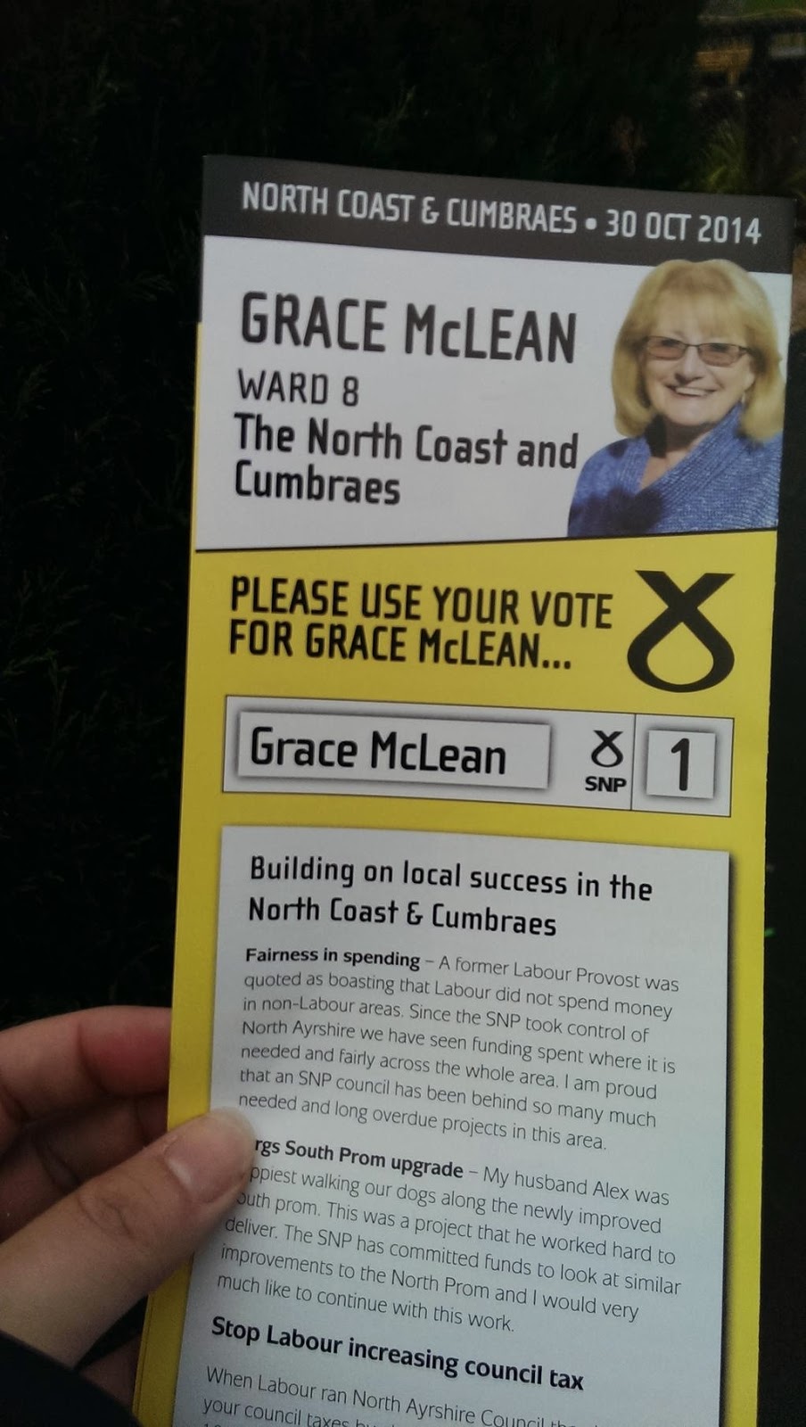 Campaigning for Grace Maclean in the ward 8 By-election Largs