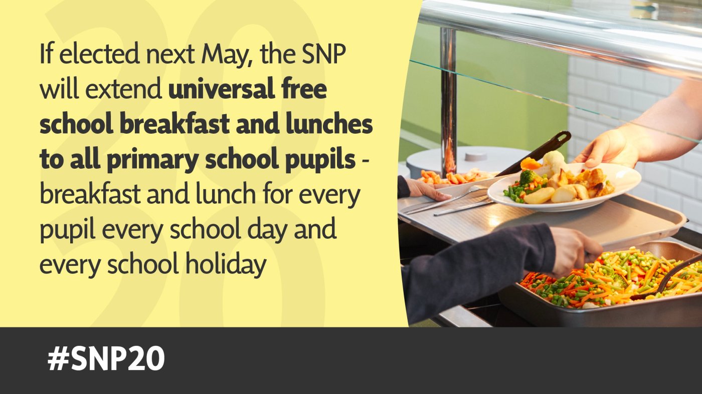 “But we will not stop there. If the SNP is re-elected in May, every single primary school pupil in North Ayrshire will be eligible for free breakfast and lunch, all year round.