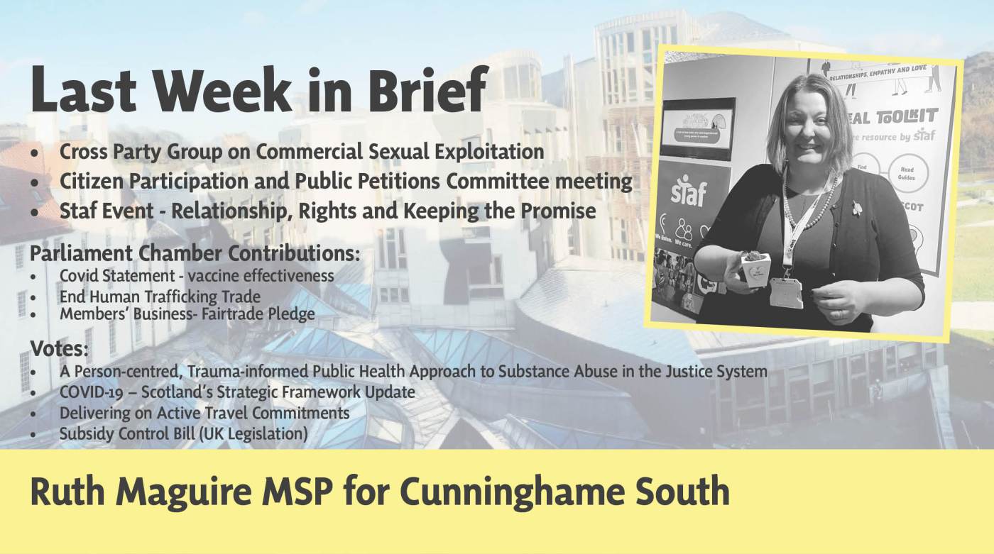 Ruth’s activities in the Scottish Parliament and Cunninghame South Constituency, 14-18 March.
