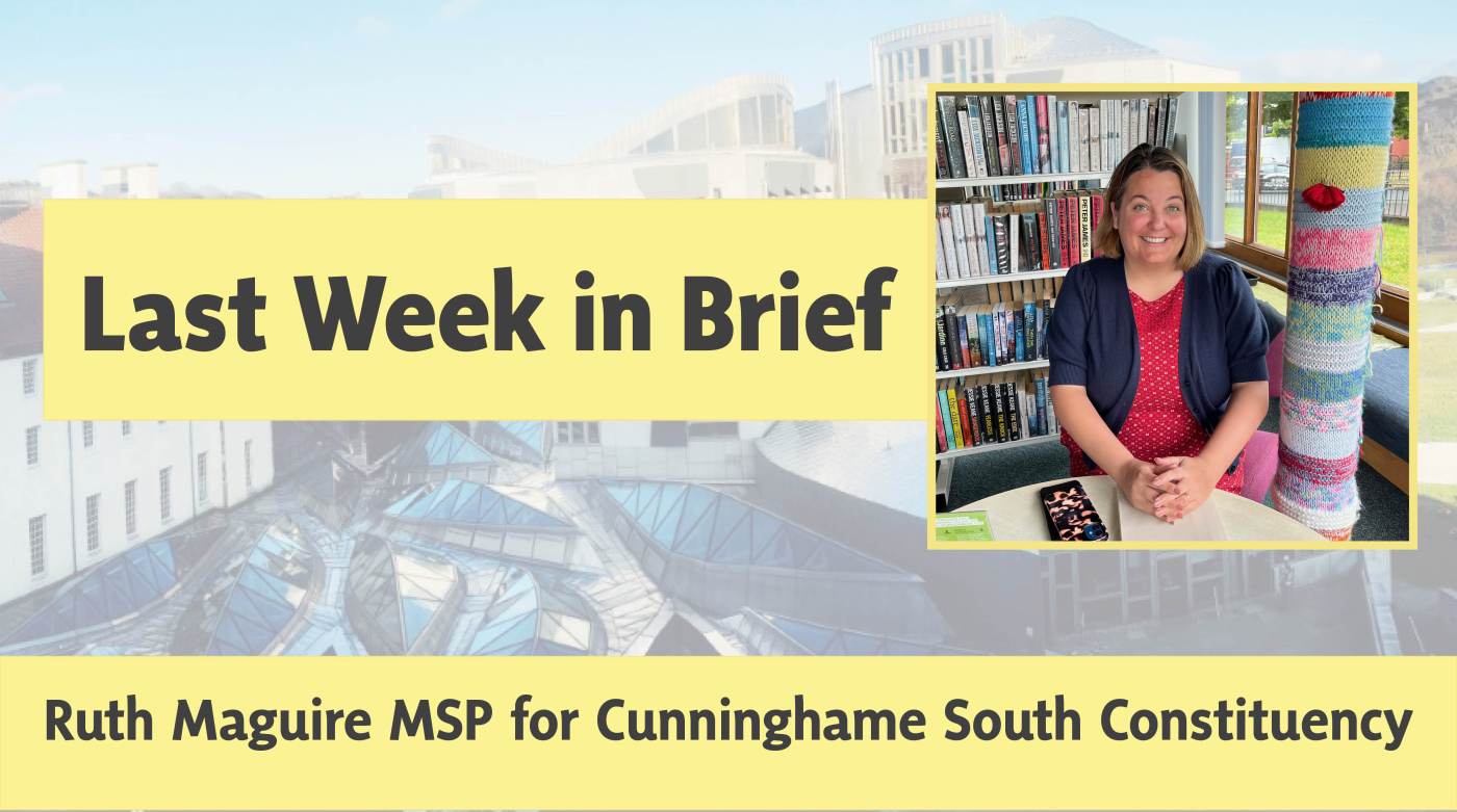 Ruth Maguire MSP activities in the Scottish Parliament and Cunninghame South Constituency, 13-17 June 2022.