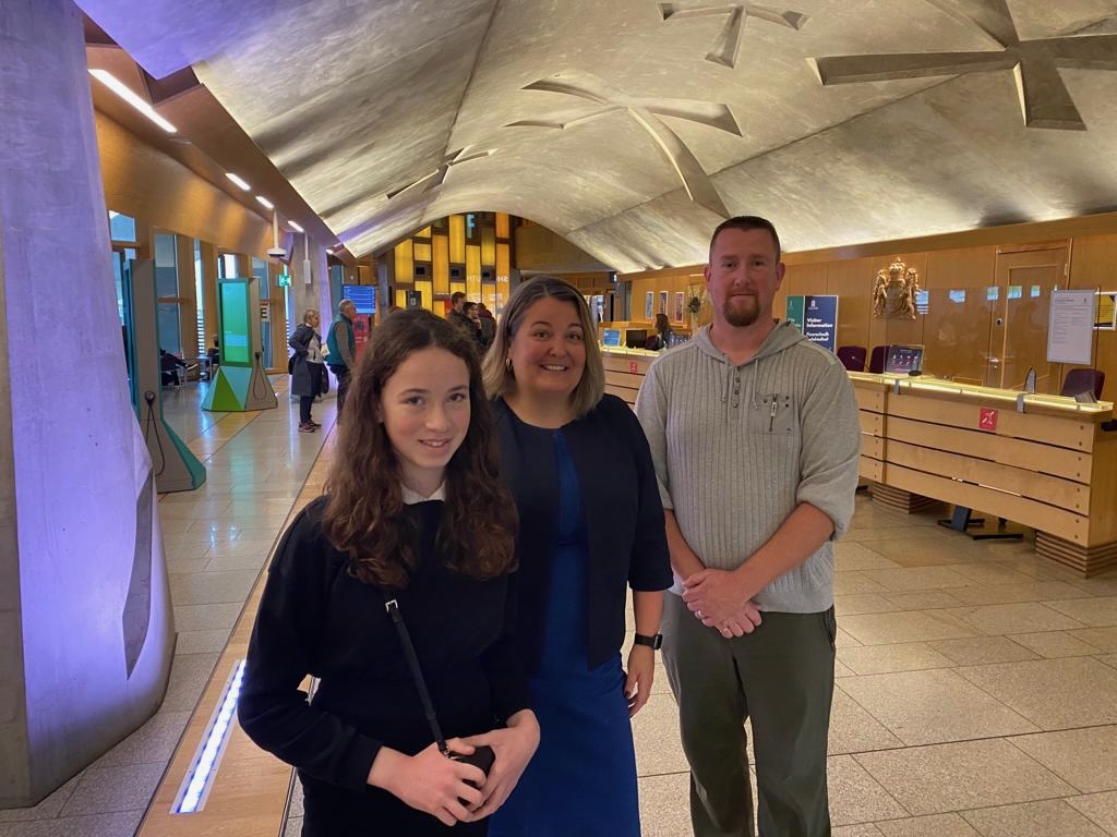Ruth was pleased to welcome descendants of Mary and Ann Brannan, Graeme and Saorsa Cobb, great grandnephew and great great niece, to the Scottish Parliament Chamber, alongside Jack Dickson, playwright, who were all present to watch the debate from the gallery.