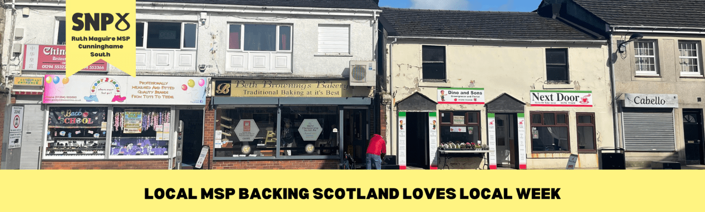 SNP MSP for Cunninghame South Ruth Maguire, is encouraging local residents to support local businesses as they back the first “Scotland Loves Local Week.”