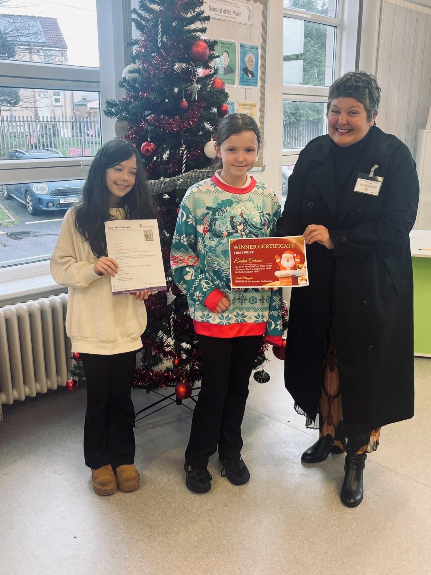 “Ember’s excellent submission really captured the essence of a Green Christmas, and stood out with it’s cute and colourful reindeer. It was a real pleasure to visit Corsehill P5s to thank her personally and deliver the party packs”