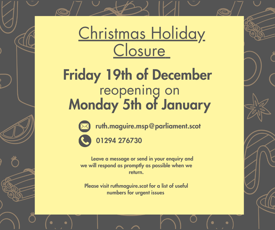 Christmas closure Share this: Click to share on Facebook (Opens in new window) Facebook Click to email a link to a friend (Opens in new window) Email Click to share on X (Opens in new window) X Like Loading... Comments are closed.